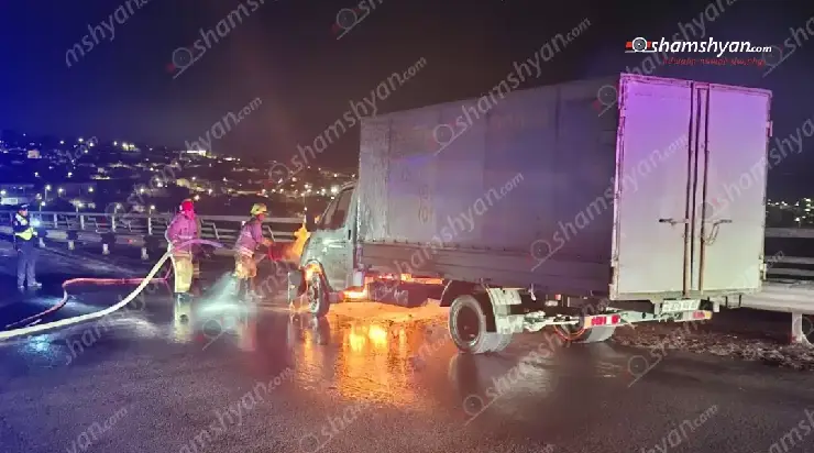 Աշտարակի կամրջի վրա հրդեհ է բռնկվել բեռնափոխադրումներ իրականացնող բեռնատար «Газель»-ում
