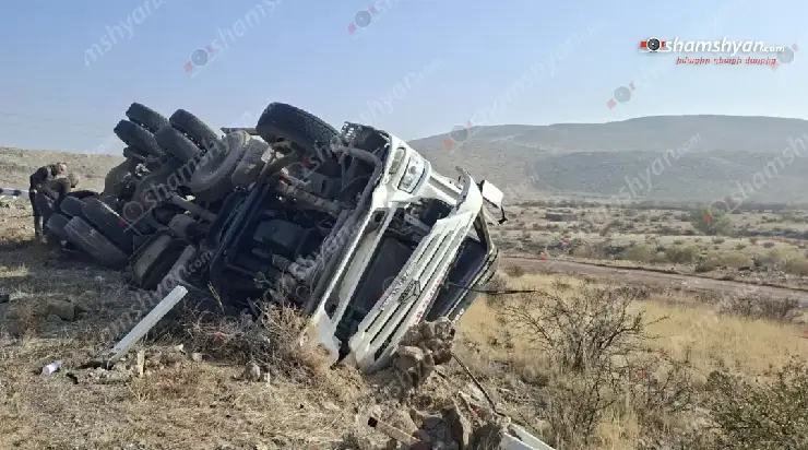 Դաշտադեմ-Քարակերտ ճանապարհին «Howo» մակնիշի բետոնախառնիչ բեռնատարը կողաշրջվել է. կա վիրավոր