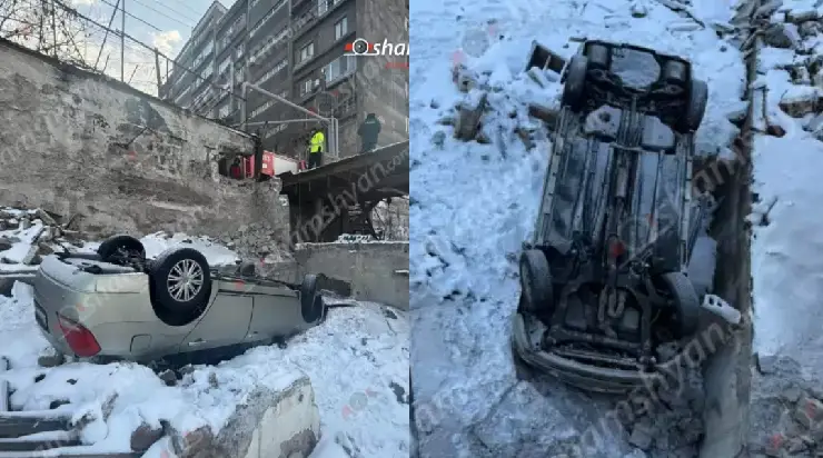 Ճանապարհի մերկասառույցի պատճառով «Nissan Teana»-ն բախվել է բետոնե պարսպին և մոտ 5 մետր բարձրությունից գլխիվայր շրջվել