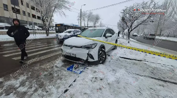 Մերկասառույցի պատճառով «Volkswagen ID4»-ը բախվել է հետիոտնային անցման ցուցանակին, կոտրել այն, որն էլ ընկել է հետիոտնի վրա