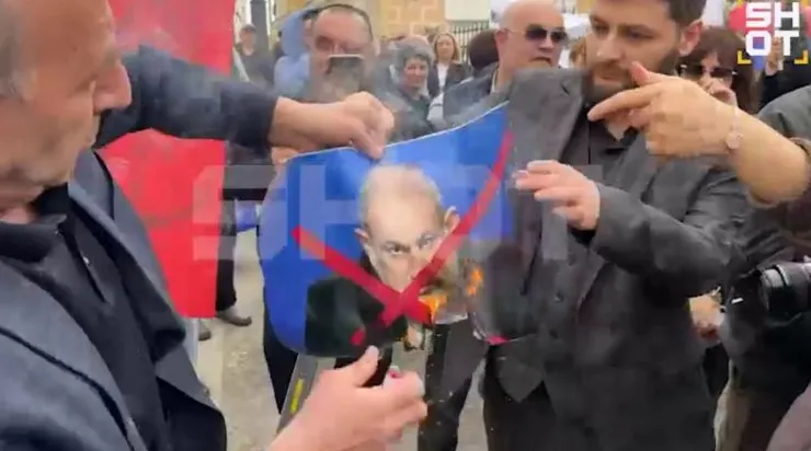 Մոսկվայում այրել են Փաշինյանի դիմանկարը