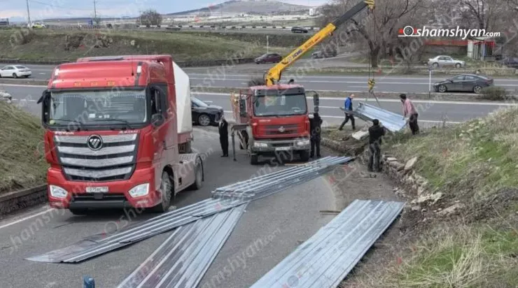 Բեռնատարից թիթեղները թափվել ու մասամբ փակել են Նոր Հաճն տանող ճանապարհը