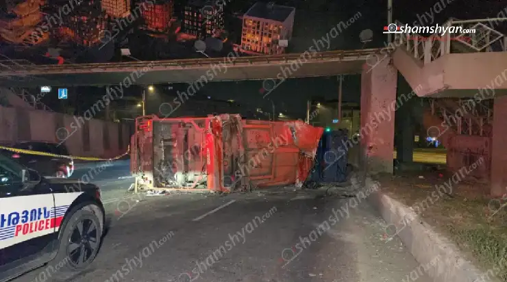 Քաղաքապետարանի աղբատարը բախվել է բետոնե պատնեշին, ապա վերգետնյա կամրջի բետոնե սյանը. կա վիրավոր